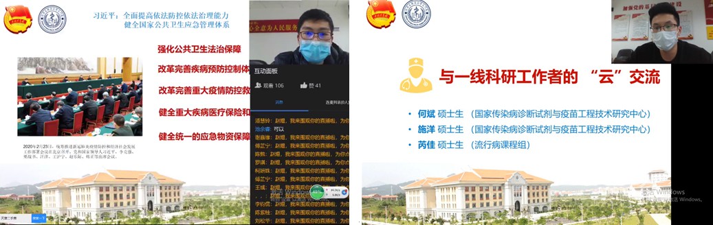 在随后的互动环节,同学们就疫苗研发、疫情预测以及国际疫情形势等问题展开了热烈“云”交流。虽隔着屏幕,但交流的热度和探讨的深度丝毫不减。