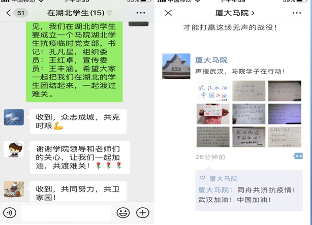 新冠肺炎疫情发生以后,在校党委的坚强领导下,马克思主义学院党委迅速行动起来,成立了学院疫情防控工作领导小组,组织全院师生员工众志成城抗疫情,坚决打好这场疫情阻击战,全力守护师生员工生命安全和身体健康,维护学院正常教学科研秩序。