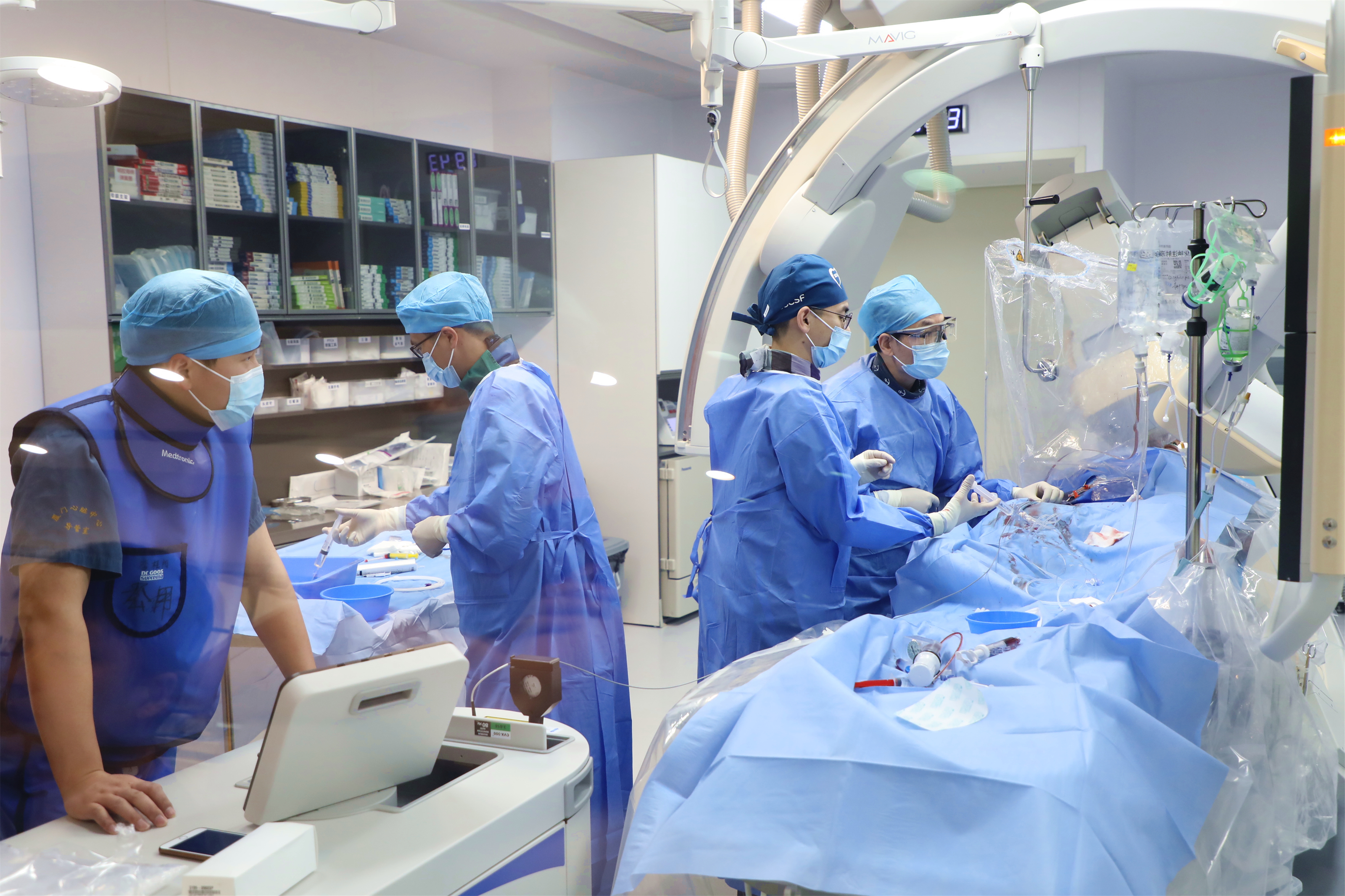 厦心叶涛主任(右一)率团队开展激光斑块消融技术