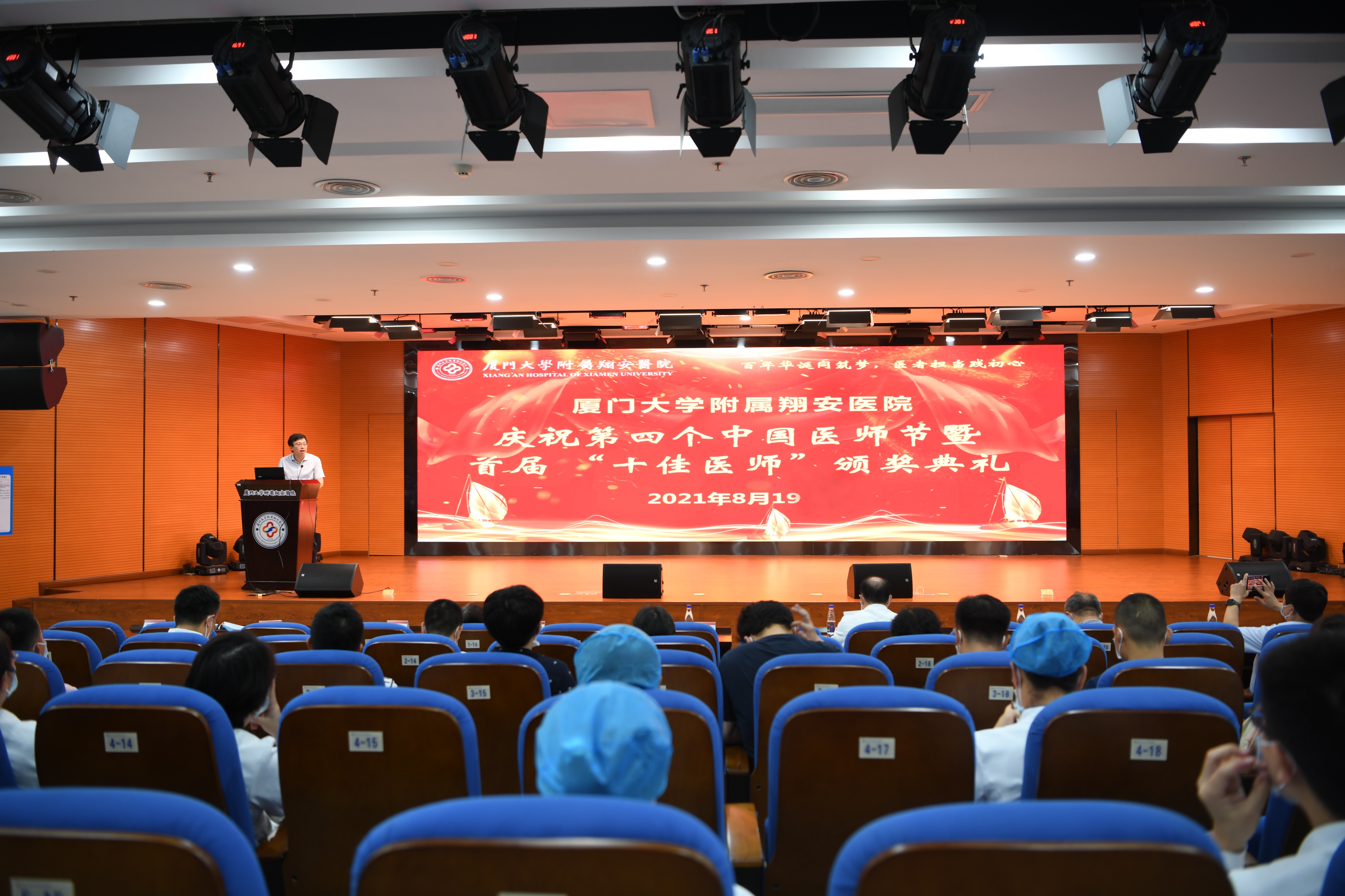 8月19日下午,厦门大学附属翔安医院(以下简称“附属翔安医院”)隆重举办庆祝第四个中国医师节暨首届“十佳医师”“优秀医师”颁奖典礼活动,院领导班子及医师代表参加会议,会议由邵晨副院长主持。