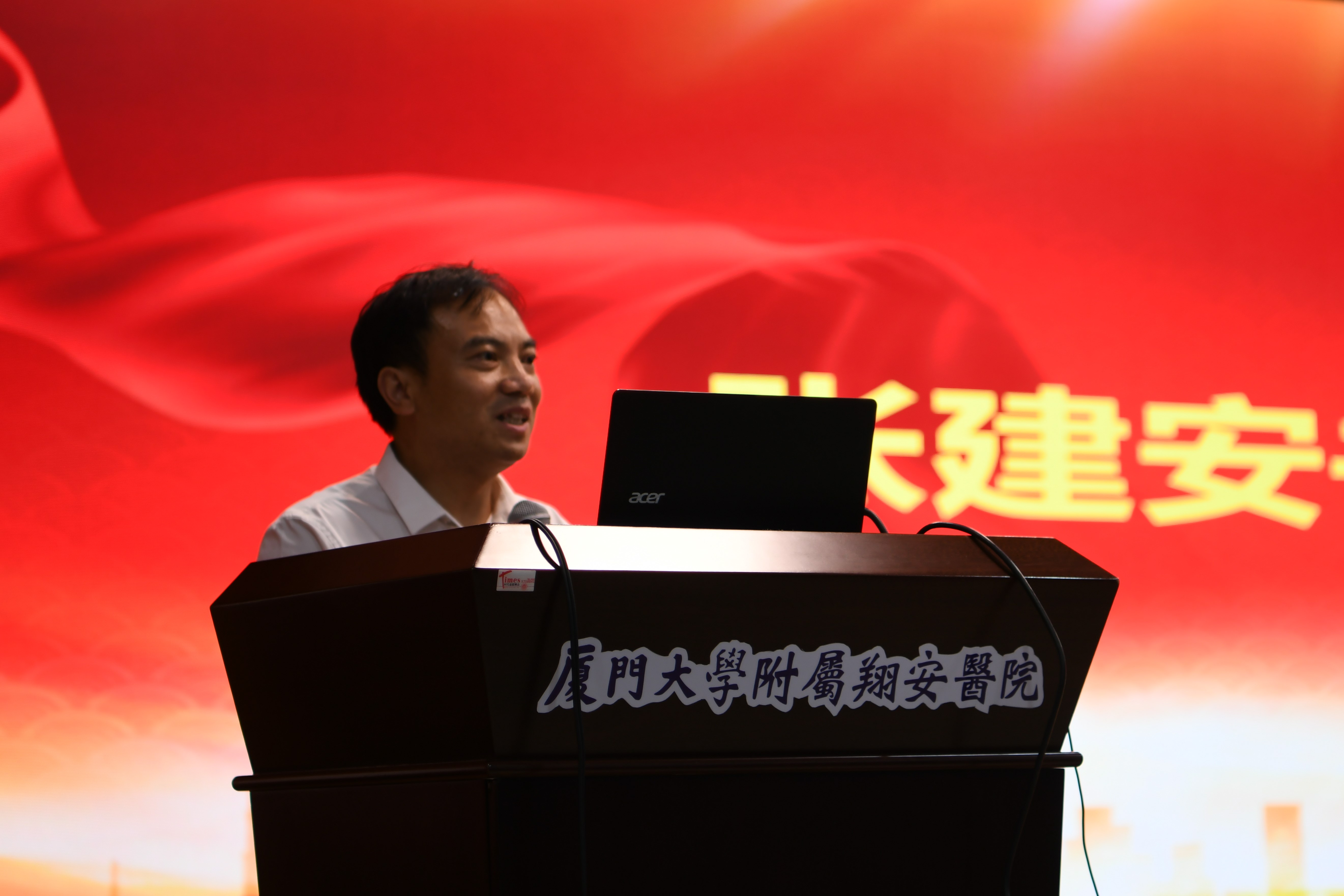 党委书记张建安说,一代代医务工作者与党同心、与党同行、为党拼搏,始终践行初心使命,全心全意为人民健康服务。站在“两个一百年”的历史交汇点和翔安医院建设发展的关键时期,希望全院医师传承红色基因,凝聚奋进力量;践行初心使命,护佑人民健康;学习先进典型,弘扬崇高精神,把伟大抗疫精神融入到工作中,为建设健康厦门、健康中国增添助力。