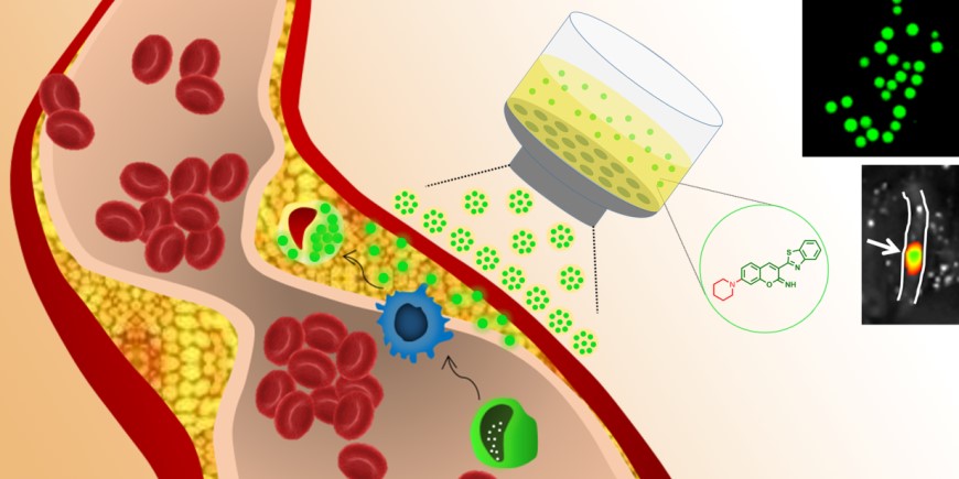 目前,针对动脉粥样硬化斑块的高灵敏性和快速的术中成像技术仍然是医学影像学的挑战。基于有机小分子荧光探针的荧光成像技术,提供了一种安全、无创的方式,其主要优点包括实时反馈、优越的分辨率以及对病灶的高度特异性。因此,荧光成像是术中勾勒动脉粥样硬化斑块的一种极具潜力的成像技术。