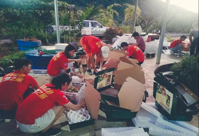 实践队全体成员还帮助农场果农包装当地特产水果。厦门大学供图