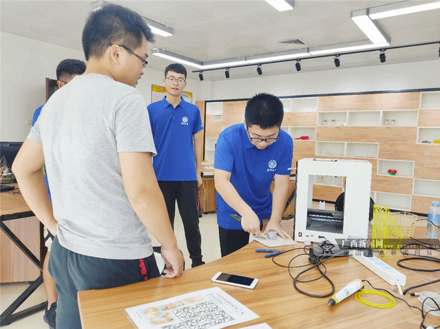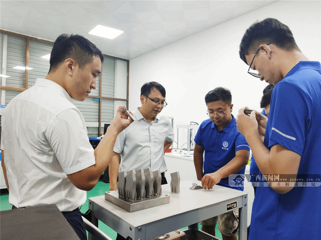 实践队成员在广西机械工业研究院体验3D光固化打印和金属打印机实验。厦门大学航空航天学院供图