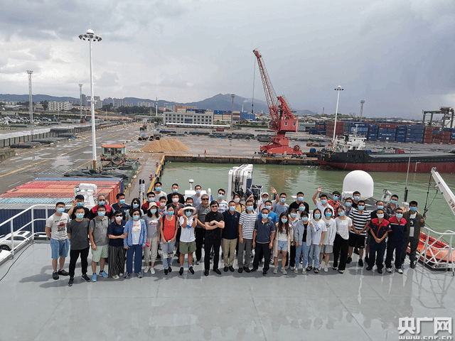出发前,厦门大学相关领导和戴民汉教授一行和全体船上人员合影留念(央广网发 柳欣供图)