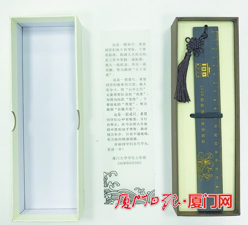 本报讯(记者 佘峥)厦大前天举行2020届优秀毕业生代表座谈会,厦大党委书记张彦送给毕业生们一个纪念品——尺子。