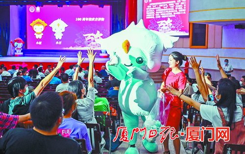 厦大百年校庆吉祥物发布,现场向观众派送吉祥物玩偶。(本报记者 林铭鸿 摄)