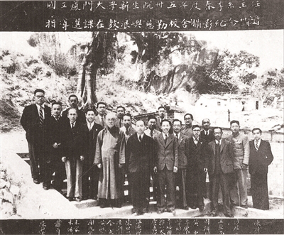 1921年4月6日,厦大借集美学校举行开校式,高朋满座,群贤毕至。学生们激动地唱起江苏武进籍著名学者、语言学家、音乐家赵元任作曲的校歌:“自强!自强!学海何洋洋!谁欤操钥发其藏?鹭江深且长,致吾知于无央。吁嗟乎!南方之强!吁嗟乎!南方之强!自强!自强!人生何茫茫!谁欤普渡驾慈航?鹭江深且长,充吾爱于无疆。吁嗟乎!南方之强!吁嗟乎!南方之强!” 1922年2月,第一批校舍落成,厦大师生由集美迁入新校舍上课,再次唱起校歌。歌声悠扬,吟唱至今,谱母校深情, 展青春长卷!