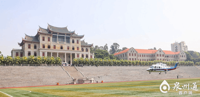 直升机赶往厦大上弦场接专业医护人员(庄华 摄)