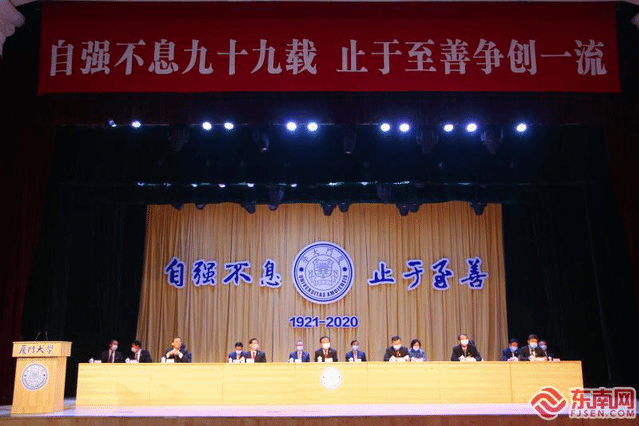 东南网4月7日厦门讯(本网记者 刘玮 通讯员 欧阳桂莲 陈浪)自强不息九十九载,止于至善争创一流。4月6日上午,厦门大学建校九十九周年庆祝大会在建南大会堂举行。不同于往年的是,今年校庆大会通过“云端”全程视频直播。在全球逾400个网络分会场中,100余万厦大师生、校友和各界人士在线上线下欢聚互动,共同庆祝厦门大学99周年校庆,展望建校百年。