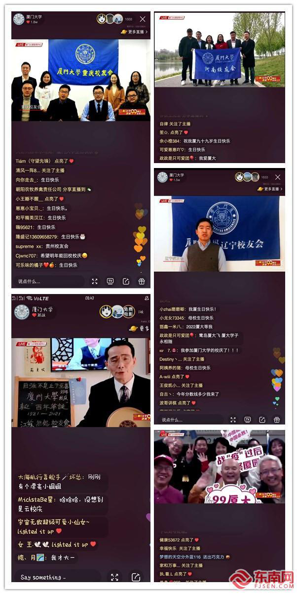 随着庆祝大会的进行,广大师生、校友通过多个直播平台表达着对母校浓浓的爱。“我厦生日快乐”“我心永属厦大”“庆九九华诞,期百年荣耀”“九九治学路,久久厦大情”“战‘疫’必胜”……一系列祝福语持续刷屏,将大会氛围不断推向高潮。据统计,累计通过在线观看网络直播视频参与本次“云”校庆大会的人数超过百万人次。