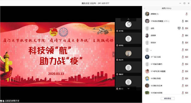 中国青年报客户端讯(韩阳 游璐茜 吴文茜 中国青年报·中国青年网记者 孟佩佩)近日,厦门大学航空航天学院团委邀请相关教授和科技创新领军人才,通过网络视频会议的形式,为学院的青年团员们上了一堂精彩的“科技领‘航’,助力战‘疫’”主题微团课。