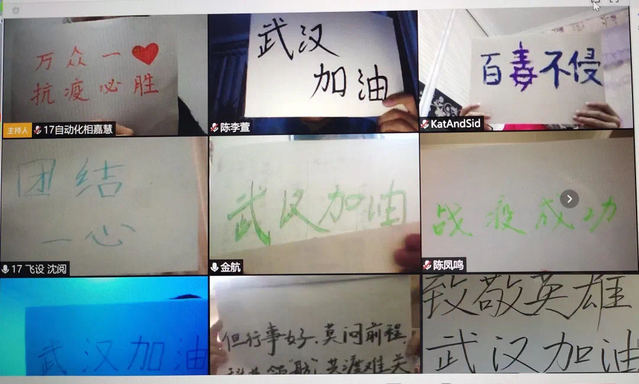 青年团员们举起“武汉加油”“万众一心、战役必胜”等“爱的号码牌”。厦门大学航空航天学院供图。