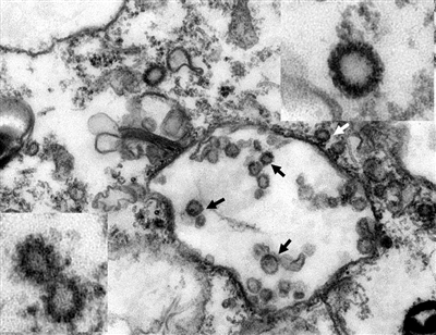 从穿山甲身上分离的新型冠状病毒电镜照片。(资料图片)