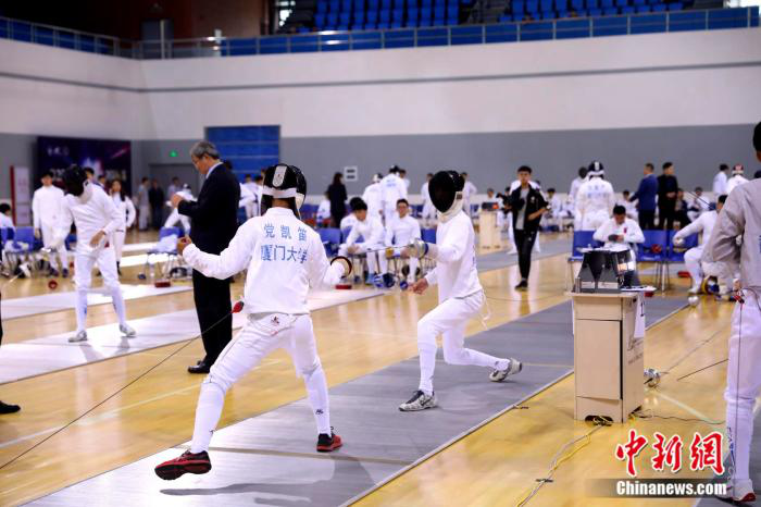 击剑运动是现代五项运动中的一项。由中国大学生体育协会主办、厦门大学承办、中国大学生体育协会击剑分会执行的本次赛事,分为甲、乙、丙三个组别,设置了男子、女子的个人赛和团体赛。