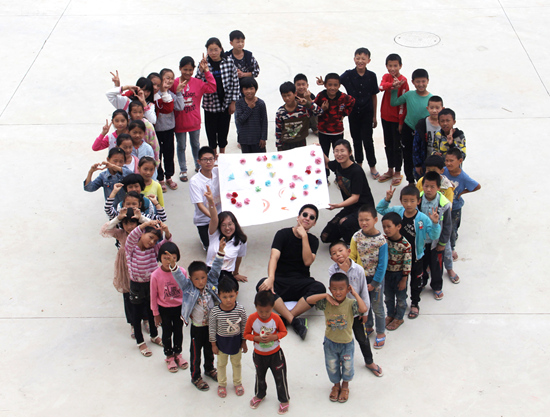 大连理工大学研究生支教团给云南省龙陵县核桃坪村小学的孩子们上手工实践课