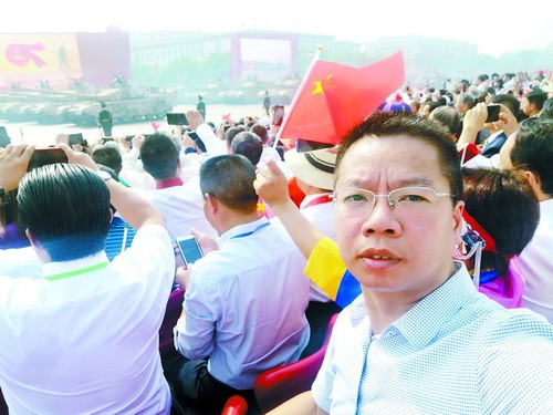 虽然是第二次来北京观礼,但仍觉得热血澎湃,为祖国富强感到骄傲自豪。