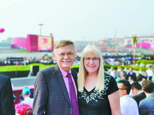 被习近平总书记称为“不见外”的美籍教授潘维廉和夫人苏珊也出现在北京国庆大阅兵观礼等活动。