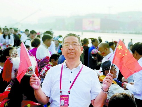 当国旗升起、现场奏唱国歌的一刹那,唐淮水说,他感到热血沸腾。当威武雄壮的阅兵方阵和群众游行队伍列队走过天安门广场的那一刻,特别是身着民族服饰的少数民族群众队伍走过时,他都情不自禁地欢呼,现场受到的感染和震撼无法用言语形容。