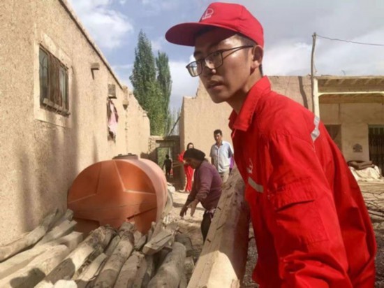 大学生在新疆阿克苏柯坪县村民家中干农活