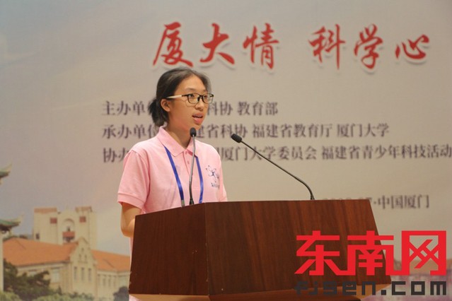 沙县一中的曾锐欣同学作为营员代表发言 东南网记者 刘玮 摄
