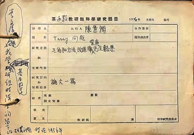 回到厦大,陈景润如获新生,如鱼得水。时任数学系函数教研室主任李文清建议陈景润研究华罗庚的《堆垒素数论》。1956年,陈景润提交了一份科学研究计划表,研究题目是《Tarry问题》(即“他利问题”—编者注),研究内容为“改进华罗庚先生的一个结果”。这份看似平凡的科研计划表,激发了陈景润攀登数学高峰的勇气,也见证了他执着钻研的精神。该计划表如今珍藏在厦门大学档案馆。