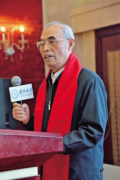 厦门大学1947级学长白植品在厦门大学内蒙古校友会成立大会上讲话。