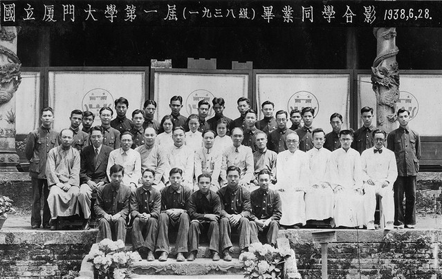 1938年,厦门大学首任校长萨本栋(二排左六)与国立厦门大学第一届毕业同学合影。