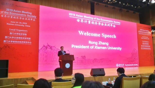 厦门网讯 (记者 沈伟彬 通讯员 李静)6月14日上午,2019年世界计量经济学会亚洲年会在厦门大学开幕。这是世界计量经济学会亚洲年会继在韩国、印度、新加坡等地召开后,首次在中国内地高校举办,厦门大学经济学院、王亚南经济研究院和邹至庄经济研究中心联合承办了此次盛会。诺奖得主、学界泰斗等逾400位国际顶尖学者出席盛会,将进一步探讨经济理论及其现实的相关性,讨论经济学理论经过事实检验的可行性,分享世界范围内的经济学学术研究成果,交流经济学的科学研究方法,探讨在理论框架中如何使用分析工具进行更为严密的理论和经验论证,由此探索出新的理论问题和研究方向。