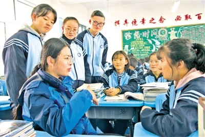 晚餐后,学生们三三两两坐在校园,捧着书本温习功课,柔和的霞光照在孩子们脸上。支教队员黄晓韵放弃课后休息,指导孩子们温习,探讨解题思路。“一年的时间或许不足以教给孩子们太多知识,但足够点亮他们对外面世界的憧憬。让他们知道,外面的世界很精彩,不要囿于这一方小天地。”黄晓韵说。