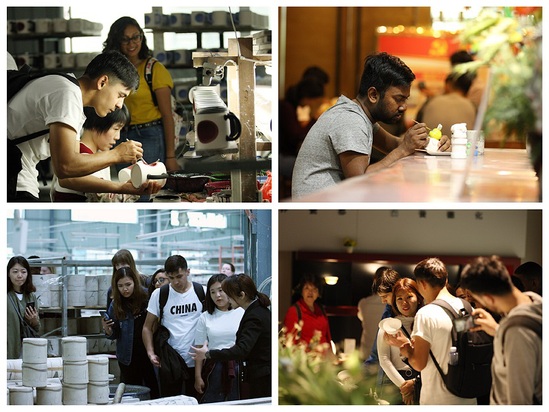 此行文化体验的高潮出现在DIY陶吧区。在陶艺师向留学生介绍示范了手拉坯、彩绘的基础知识和操作手法后,大家获得了“一显身手”的好机会。但老师手里顺溜的泥巴一到了留学生手里却并不那么“听话”,揉泥、拉坯、脚速、手力都需要协调一致方能出佳品。他们在学中做,在做中学,现场互动氛围积极热烈。在这方充满泥土气息的空间里,大家体验玩泥的乐趣,锤炼自己的身手,感受陶瓷文化的心灵润泽。活动结束后,白俄罗斯留学生沙奇叡说道:“手拉坯看似简单,如果没有多加练习的话,还是很难做好一个瓷器的。中国的陶瓷手艺人要做出那么精美的瓷器肯定需要下不少功夫的,实在是敬佩!”