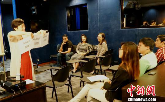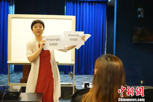 中新網馬尼拉4月12日電(記者 關向東)“菲律賓”、“總統府”、“新聞部”,菲律賓大學孔子學院(簡稱菲大孔院)來自中國的漢語老師,4月12日舉著三張漢語詞彙牌,在菲律賓總統府新聞部開班傳授普通話。近30位學員將在40周80個課時的漢語學習過程中,掌握基礎漢語,了解中國文化。