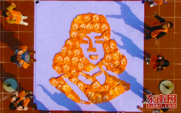 据悉,这是该校青年志愿指导中心组织20位志愿者代表,用200件橙色马甲拼接而成的,整个头像图案占地约10平方米。