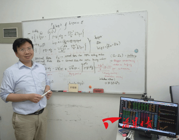 “最近,我正在研究期权市场的微观结构,这是一个国家自然科学基金项目,也是我的核心研究领域。它将提供给投资者或决策者丰富的资本市场讯息,协助他们对市场趋势作出判断。”谢沛霖的办公室位于厦门大学经济学院,这是一个10平方米的空间,桌面上摆放着一叠叠数据资料,墙上挂着一块写满数学公式的白板。他说,这里承载着他的快乐与梦想。