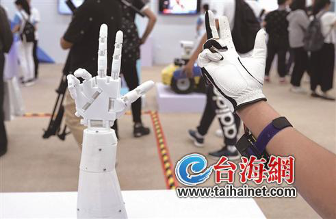 戴特殊手套 使唤“机械手臂 ”端茶