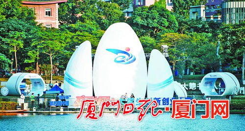 人们总是把大学生创业教育形容为“孵蛋”,本届比赛,厦大在芙蓉湖的湖心岛上,搭建一个蛋形舞台,供大学生展示创新创业成果。