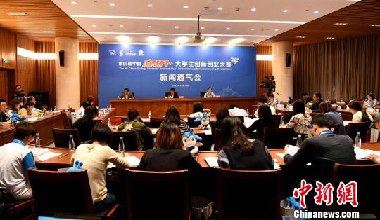 第四届中国“互联网+”大学生创新创业大赛总决赛12日晚在厦门大学举行第一场新闻通气会。王东明 摄