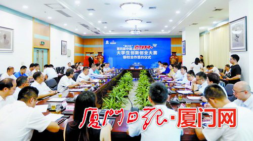 本报讯(记者 吕洋)近日,“建行杯”第四届中国“互联网+”大学生创新创业大赛银校合作协议签约仪式在厦门大学举行,厦门大学与建设银行代表现场签署了本次大赛的银校合作协议,并为厦门大学创新创业实践基地揭牌。