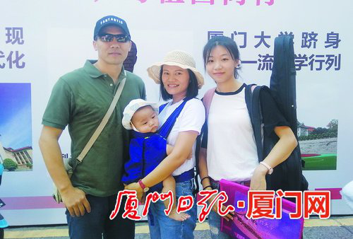 新生胡蓉同父母在厦大合影。