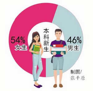 本报的资料显示,这是厦大本科第11年的“阴盛阳衰”,厦大男生最后一次“扬眉吐气”是2007年,当年录取的新生,男生占52%,女生占48%,不过,从2008年开始,女生人数就开始超过男生,2013年,新生中女生占比到了高峰,达到56%。