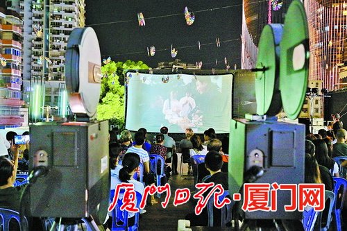 一块巨大的白色幕布,一台胶片放映机,排排坐的人们轻摇着扇子……这一幕是不是勾起了很多人的回忆?14日晚7时许,“流金岁月,影像沙坡尾”——中国电影收藏展走进思明暨胶片电影暑期露天放映大会在厦港街道艺术西区鱼玩场举行,吸引了不少市民驻足观看。