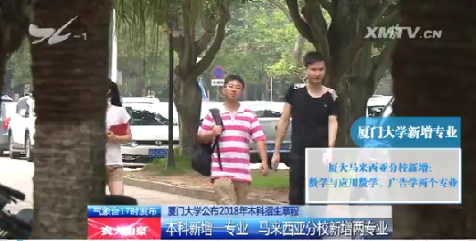 今年厦大新增一个本科招生专业:电磁场与无线技术,以电子信息类进行招生。厦大马来西亚分校则新增数学与应用数学、广告学两个招生专业。