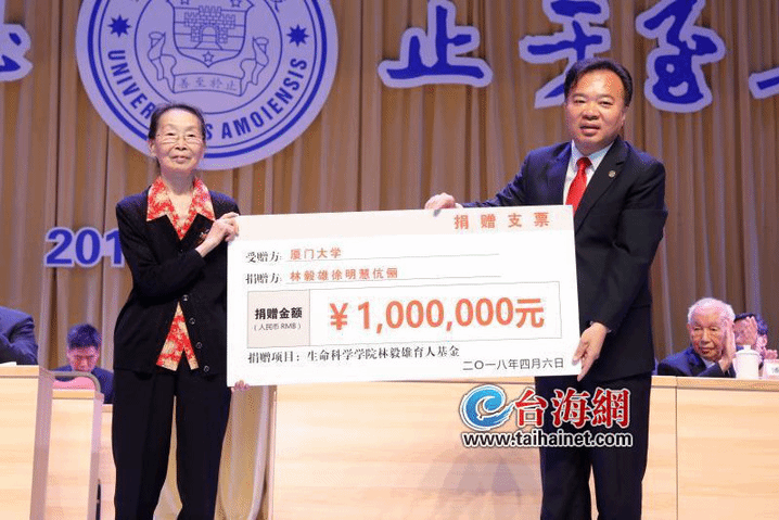 林毅雄教授1956年毕业于厦大生物系植物专业,先后在中国医学科学院药物研究所、北京林业大学、中国科学院生态环境研究中心工作。他和夫人均为工薪收入,生活十分节俭。林毅雄教授生前心系母校,多次向夫人表达向母校捐资助学的心愿。2012年丈夫过世后,徐明慧着手完成丈夫的遗愿,将他们在北京唯一的一套66平方米住房出售,卖了300多万元。除去自己回家乡定居在老年公寓所需的基本养老费用外,其余尽数捐赠给厦大设立“生命科学学院林毅雄育人基金”,奖励、资助学生成长成才。