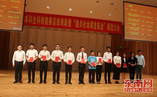 当天的颁奖大会,厦门大学表彰了2017年度本科生优秀论文奖、最佳大学生创新创业训练计划项目、最佳创意项目、我最喜爱的项目、先进个人、优秀指导教师、学业竞赛优秀项目、品牌校级学业竞赛项目、突出贡献奖及先进集体等。厦门大学还将多方筹措超过130万元的资金,用于奖励2017年度优秀科创项目,以及在过去五年中指导本科生科创竞赛贡献突出的教师。