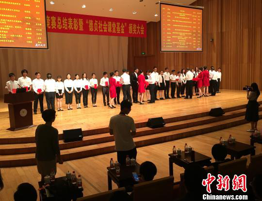 4日,厦大举办2017年度本科生科创竞赛总结表彰暨“德贞社会课堂基金”颁奖大会。 杨伏山摄
