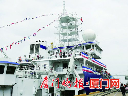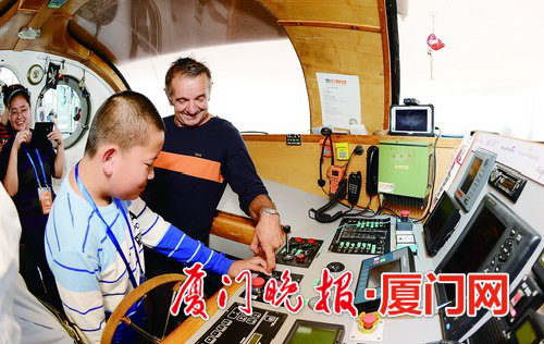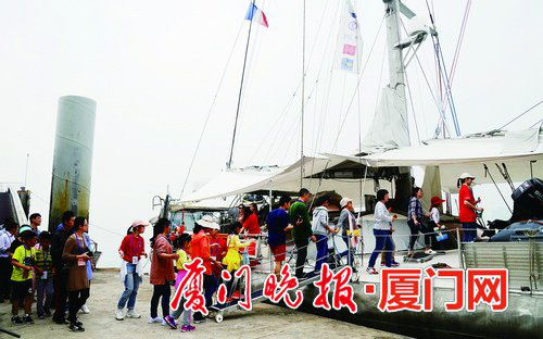 本报讯(文/记者 吴笛 陈万泉 图/刘东华)今天上午,厦门晚报30名读者登上世界顶级科考船法国塔拉号(Tara),在这艘被誉为“移动海洋实验室”的帆船上感受科考魅力。同时,还有50名读者登上停在塔拉号旁边的厦大嘉庚号科考船参观。