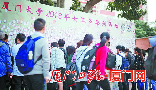 心愿墙吸引了好奇的同学。(本报记者 林铭鸿 摄)