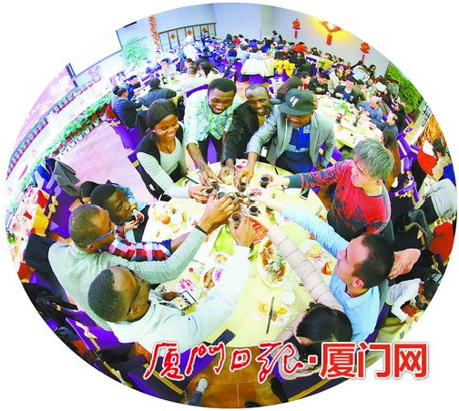 厦门大学勤业餐厅举行2018迎新春大围炉。 (本报记者 姚 凡 摄)