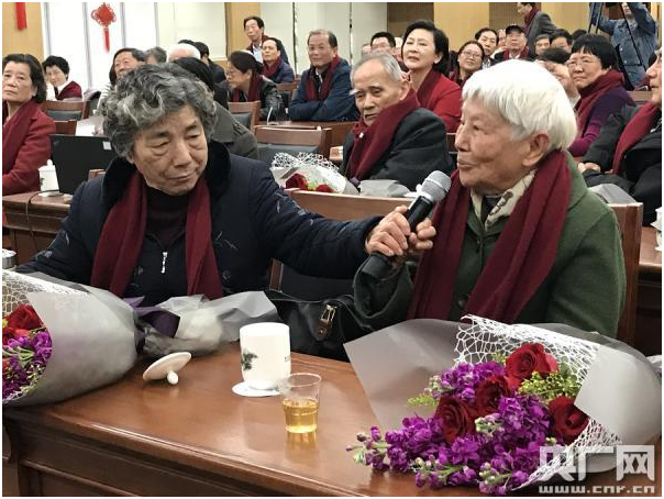 在当天上午的活动现场,感恩时代、感怀母校、感念师恩的氛围贯穿始终。师生们围上了纪念版红围巾,重逢的激动和感慨溢于言表。学生们为头发花白的老师献上鲜花,并共同缅怀已经逝去的老师和同学。