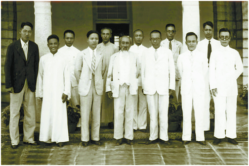 1937年厦大私立改国立,萨本栋校长(前排左三)与私立厦大校长林文庆(前排左四)等在移交仪式上合影。